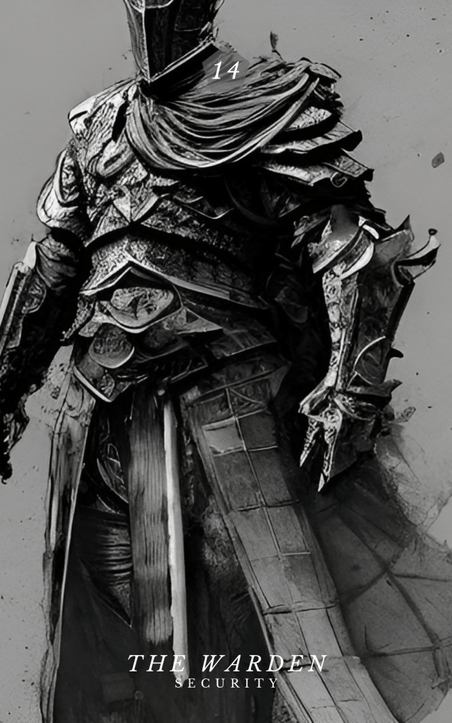 The Warden offers security to those who have yet to find it within themselves. He shakes weak foundations and steps in when we receive less than we deserve. Make friends with the Warden and trust that he grants safe and secure passage to a bright future.