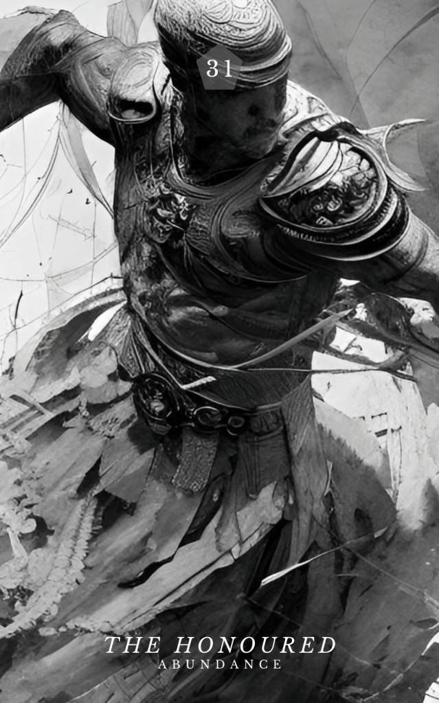 Many men sing in praise of the honoured; he has ‘made it’ in the eyes of most. Yet material wealth and acclaim are unimportant as he strives for higher achievements. The Honoured values integrity, innovation, and bravery. Offering his abundance and service to those in need who display such qualities, he gives himself to his cause and so deserves the honour he has attained.