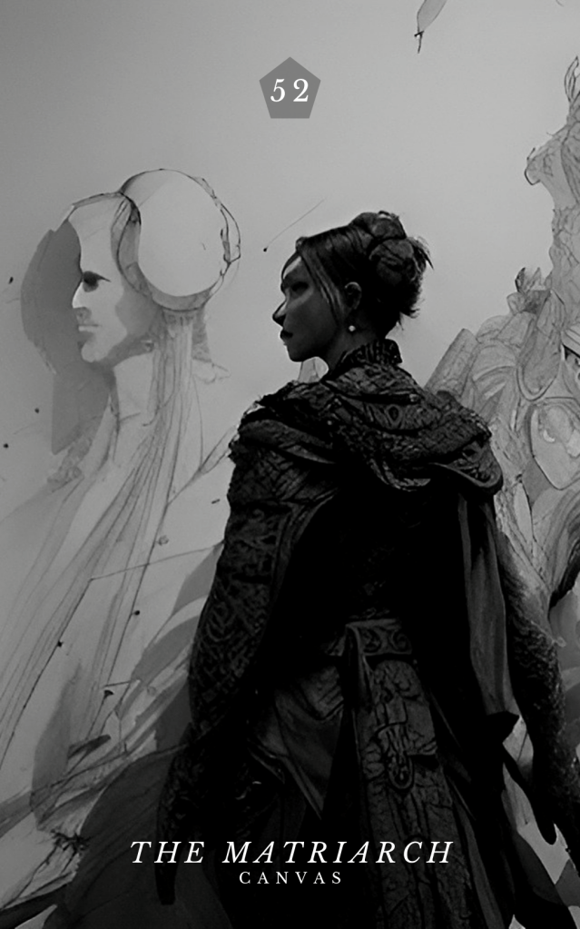 The Matriarch personifies the feminine aspect of humanity. She brings fertility and balance to her kingdom, offering strength and empowerment, always leading by example. Beloved by those she was chosen to charge, she reluctantly wears the crown, knowing every man is sovereign. The Matriarch is well acquainted with the architecture of society and provides the canvas on which collective well-being is created.
